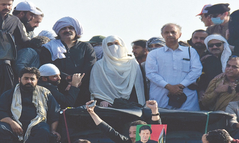 Although she appeared only rarely in official photos, shielded from view during court appearances by large white sheets and always wearing a face veil, Bushra Bibi led the rally demanding her husband’s release.