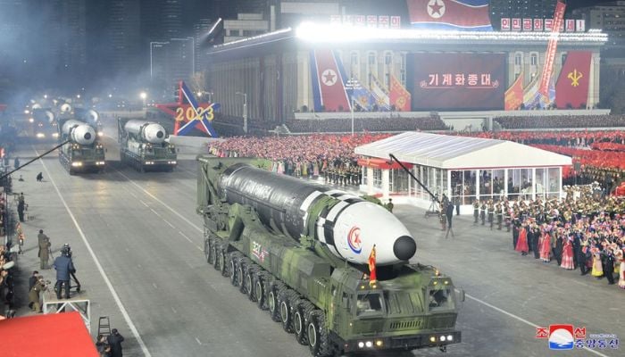 Nuclear-armed North Korea showcased its missile production muscle during a nighttime parade, state media reported on Thursday, displaying more intercontinental ballistic missiles (ICBMs) than ever before and hinting at a new solid-fuel weapon.
