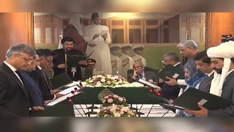 The cabinet members who took oath include retd Brig Haris Nawaz, Ishwar Laal, Dr Saad Niaz, Khuda Bakhsh Marri, Dr Rana Hussain, Umar Soomro, Dr Junaid Shah, Mubeen Jumani, former housing secretary Younus Dhaga, Rashid Wali Muhammad.