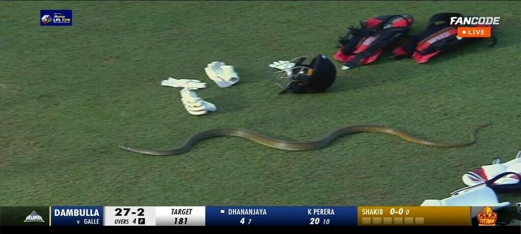 The play was stopped in Lanka Premier League (LPL) match between Galle Titans and Dambulla Aura on Monday in Colombo, as a snake entered the ground.